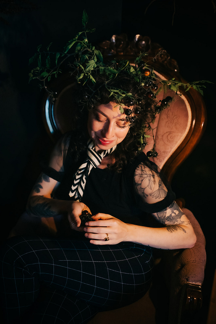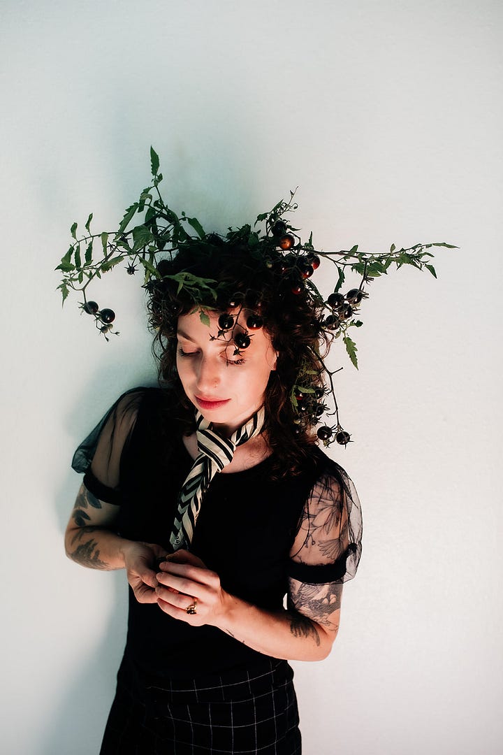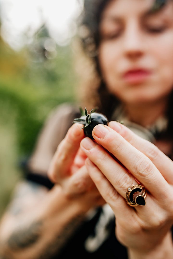 We planted more black tomatoes than anything else this year, and when they started to fruit I knew I’d want to make a crown with them. And maybe that’s a bit juvenile at this point, but it’s also something that made me happy. Like painting my corner NW-facing room entirely black- walls and ceiling. It’s where I sit every morning and each evening. It started as a writing room, and has also morphed into a perfume room. While I build this house, I notice my affinity for base notes. The woody, dark, resinous notes that linger longer, but don’t project as loudly. And maybe that’s metaphorical because just like black tomatoes and small black rooms there’s something comforting about what holds us in the moodier, quiet moments…what fruits as the light gets dimmer. What makes you lean in closer. What remains- what stays after the initial sparkle fades. The tighter web, the stubborn flame. I have a lot to say about my apothecary and the garden and how lovely they are to join me together for what comes next.
